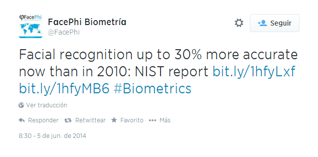 Facial recognition up to 30% more accurate now than in 2010 (Fuente:http://biometrics.nist.gov/cs_links/face/frvt/frvt2013/NIST_8009.pdf)