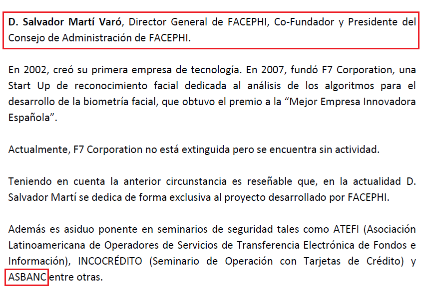 "FACEPHI ha enfocado su negocio a proyectos que implican reconocimiento 1-1 (autenticación), área en la que se ha convertido en especialista." (Pag 36, DIIM)