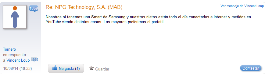 Ahora bien, suponiendo ambos casos nos encontramos con que nuestro primer "tiempo" de inversión alcanzará el año 2016 (ejercicio 2015) o a lo sumo con Brasil en los planes de NPG, el año 2017 (ejercicio 2016).