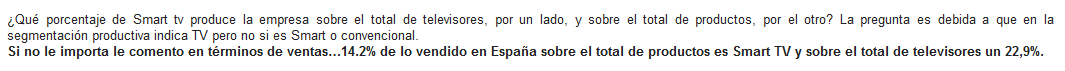 En primer lugar, no es extraño ver que la empresa no ha variado demasiado su nivel de facturación si consideramos que ésta se ha dedicado fundamentalmente a la venta de TDT, que le permitió obtener en el año 2009 un beneficio neto aproximado del millón de euros. Desde dicho momento ha tenido que ir adaptándose al mercado para poder evolucionar favorablemente, siendo éste el punto donde entran en escena las smart tv, los smartphone o las tablets (dicha argumentación ya ha sido tratada en su totalidad en el punto 6).