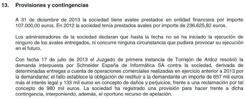 - La fusión con DFC Group BVBA en Julio de 2012 aportando las sociedades DFD France (340.596,9 euros), DFC Electronica Unip (340.596 euros) y Digital Friendly Communications (454.129,2 euros). Dicha partida es la que aparece en 2013 en "inmovilizado intangible" ya que es como aparece en la presentación de Julio.