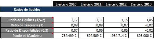 Y para finalizar, y tal y como podemos observar, los ratios de liquidez de la empresa son desastrosos, lo cual nuevamente, es debido a que la empresa está en pleno funcionamiento a la fecha del cierre por lo que dificilmente vamos a poder observar elevados ratios en tesorería.
