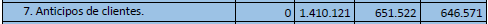 Este punto puede ser mejor comprendido si observamos como la empresa a fecha de cierre tiene un elevado saldo pendiente de cobro (clientes), y también una parte de la cuenta de clientes ya anticipada.