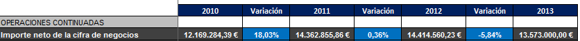 Todo sea dicho, la parte correspondiente al año 2013 ha sido obtenida de la presentación de la empresa de Julio ya que ésta engloba el resultado del grupo, mientras que las cuentas auditadas solamente corresponden a la empresa matriz en España.