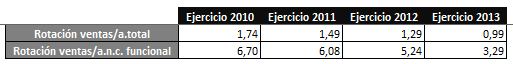 Por último, la rotación se ha disminuido debido al incremento de los activos, y a la evolución "llana" y sin cambios significativos de la facturación de la empresa, cuyos argumentos ya han sido tratados en el punto 6 del presente artículo.