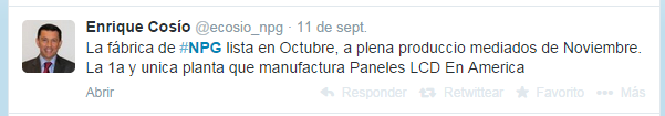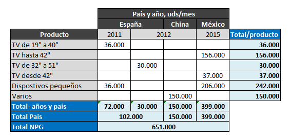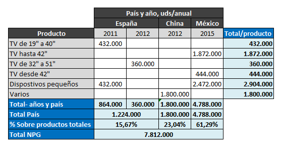 El primero, está comprendido por el propio apagón de LATAM, el cual viene determinado por la población, o consumidores, que adquirirán las televisiones digitales. Es importante remarcar esto porque México engloba aproximadamente el 20% de la población de todo LATAM (117/577=20,27%), encara el apagón en el año 2015, y NPG tiene fábrica propia en dicho país con la ventaja logística y mejor condición para afrontar las posibles licitaciones que ello conlleva.