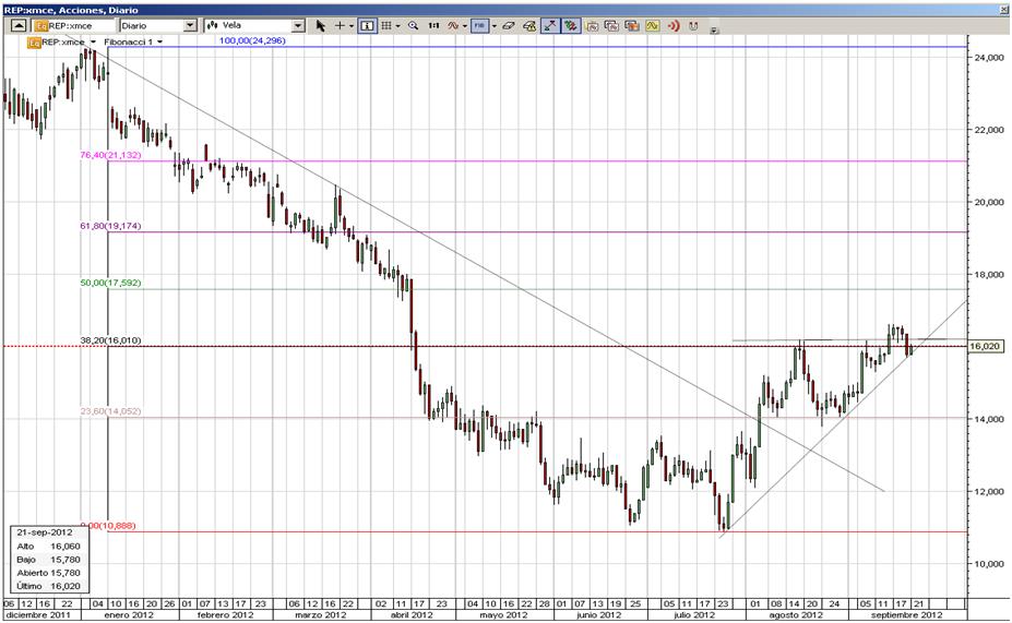 Estos niveles son claves para poder saber si la recuperación que está experimentando el valor desde finales de Julio de 2012 se confirma o, por el contrario, se trata de una corrección de la tendencia bajista principal que arrastra desde principios de 2012.