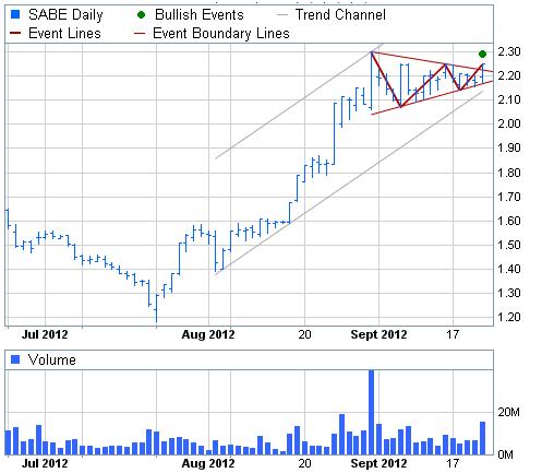 En el caso de que el CFD rompa al alza antes de las ¾ partes del triángulo, y esta ruptura se haga con fuerza, la figura marca un objetivo igual a la subida experimentada previamente a la formación del triángulo que forma parte del gallardete. Si proyectamos al alza esta distancia, la figura nos marca un objetivo en torno a los 2.60-2.65€.