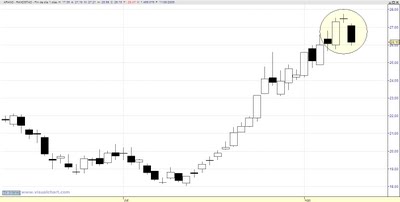 En la apertura del mercado de hoy vamos a cerrar la operación que teníamos abierta en Randstad desde el pasado 22 de Julio. Como podéis observar en el gráfico, después de la gran subida de la última semana, la evening star (estrella del anochecer) que ha formado el valor en las últimas tres sesiones invita a la cautela. No tendremos ningún reparo en volver a abrir la operación en este valor si se produjese un cierre por encima de los 28 euros.