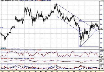 Estamos ante la posibilidad de ver a este valor cerca de un nivel de soporte, soporte que viene dado por el primer retroceso proporcional de Fibonacci, el 0.382 que corresponde con el 33.10. De aguantar este nivel podríamos estar ante la posibilidad de compra mediante CFDs con objetivo hacia la zona que ronda los 37.00€.