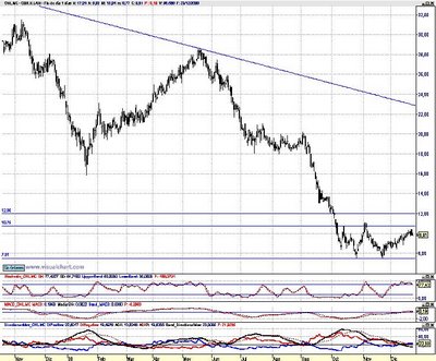 Le está costando trabajo, no solo superar el máximo de principio de noviembre, sino también alcanzar el mismo nivel. Ante el aspecto de nuestro indicador que todo apunta hacia un recorte en los precios, cabe la posibilidad de descensos en los próximos días y por lo tanto podríamos aprovechar un pequeño recorrido a la baja con apertura de cortos mediante CFDs sin demasiado apalancamiento.