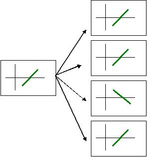 En la figura, la línea contínua muestra el perfil de riesgo en una posición comprada, al contado, sin uso del apalancamiento financiero, dónde un euro de variación del precio del activo provoca un euro de ganancia o pérdida. La línea discontínua es el resultado de hacer uso del apalancamiento financiero como multiplicador, hasta dos veces, dónde un euro de cambio de precio provocaría el doble de ganancia o de pérdida.