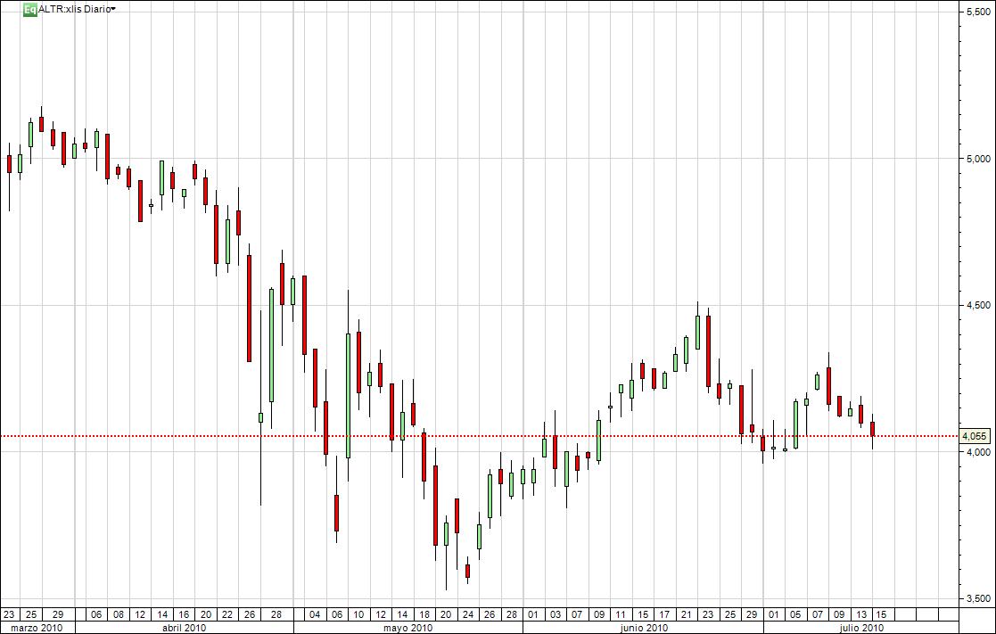 De hecho, puede ser una buena oportunidad para probar una operación bajista en este valor utilizando CFDs. Podríamos entrar cortos a mercado para mantener la operación en tendencia colocando el stop en la zona de 4,55-4,60 euros.