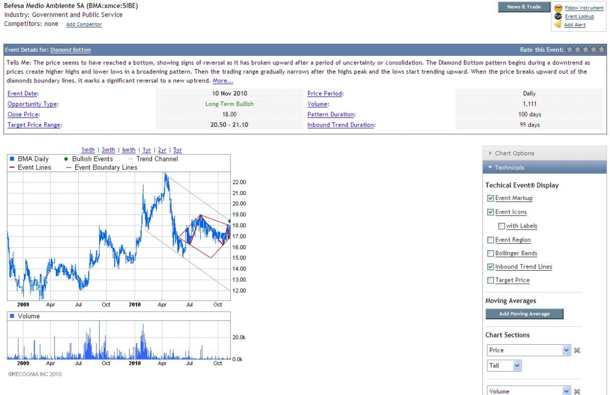 Nuestra plataforma ClickGlobal Trader nos muestra que el precio del CFD de Befesa muestra una figura clásica de forma Suelo Diamante. En estos momentos está a punto de romper el final de la figura, que de cumplirse iría al alza. El objetivo que marca la figura es entre los 20.50 hasta los 21.10. Los máximos anuales serían el siguiente nivel a tener en cuenta. Sin embargo, para ello podría buscar realizar un pullback previo en la resistencia actual situada en los 19 euros.