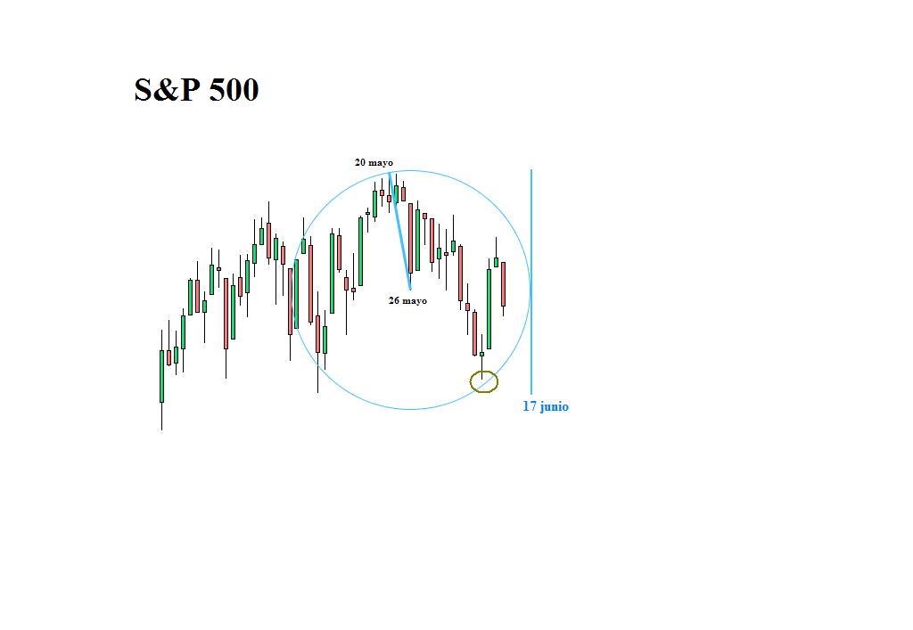 Precisamente el 17 de junio se preveía un viraje del S&P 500, a juzgar por la circunferencia que mostré en el informe publicado en Bolsayciclos el 13 de junio.