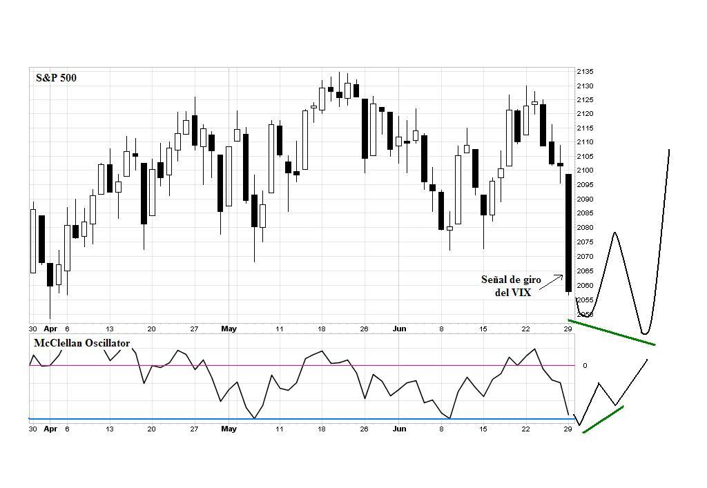 Y todo esto estaba teniendo lugar en el contexto creado por la señal de giro del VIX desencadenada el 29 de junio (para entender esta señal, véase mi modelo cíclco en Bolsayciclos).