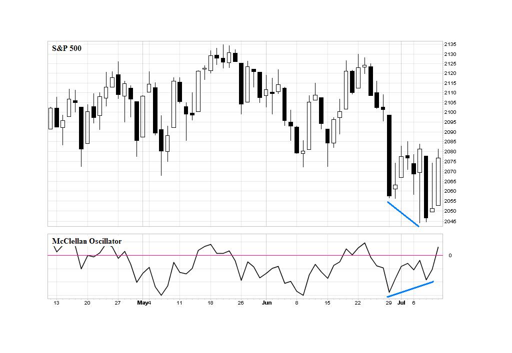 Una vez generada la señal, lo habitual es que el McClellan incurra en sobreventa y después forme una divergencia alcista con el S&P 500.