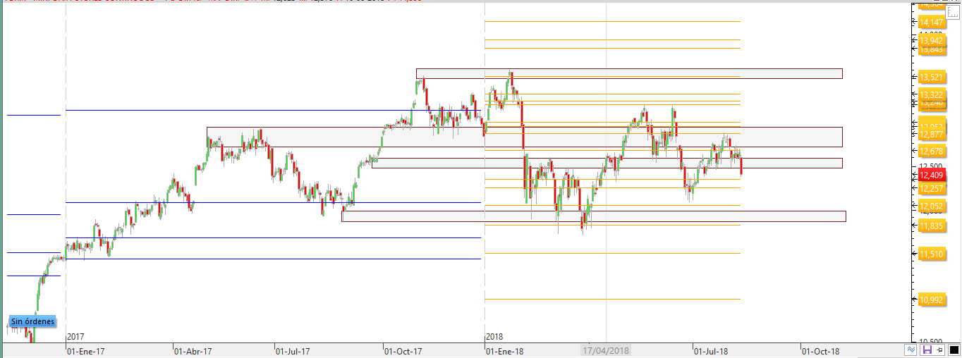 Esto sólo es con niveles sacados del gráfico diario. Como dijimos anteriormente, además se obtienen de la misma manera niveles mensuales, semanales y diarios. Cada día al finalizar la sesión se dejan ya vistos y calculados esos otros niveles que ayudarán a negociar.