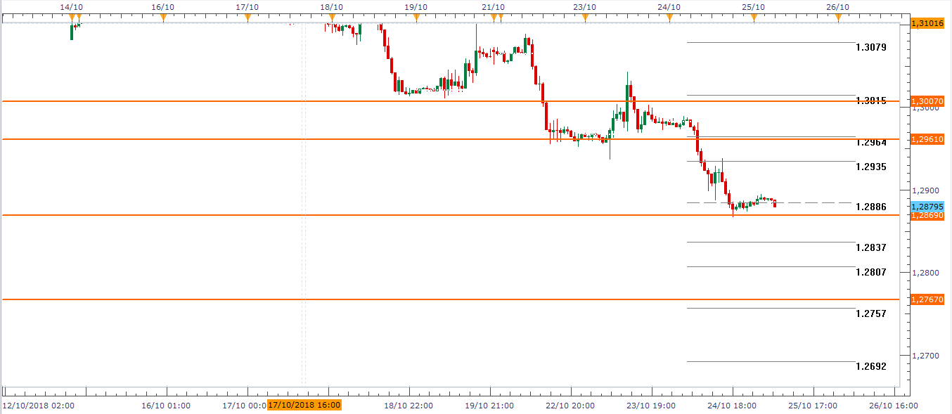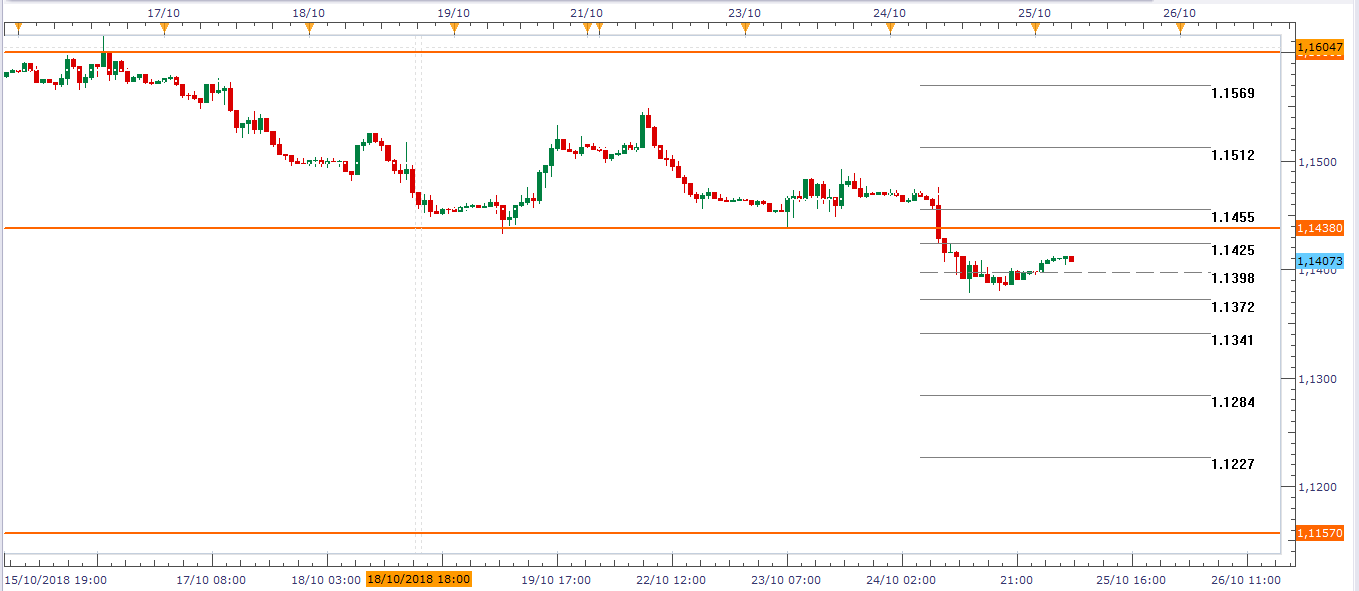 El EUR/USD por su parte sufre una fuerte presión debido por un lado a tensiones políticas con Italia y a mejores datos de los esperados que se han conocido desde Estados Unidos. la pérdida del nivel 1.1438 que cada vez que es golpeado rechaza a la cotización desde principios del mes de agosto y la envía al refugio 1.1605 puede ser una oportunidad de negocio a la baja para ir en busca del 1.1157. El mapa de situación es el siguiente:
