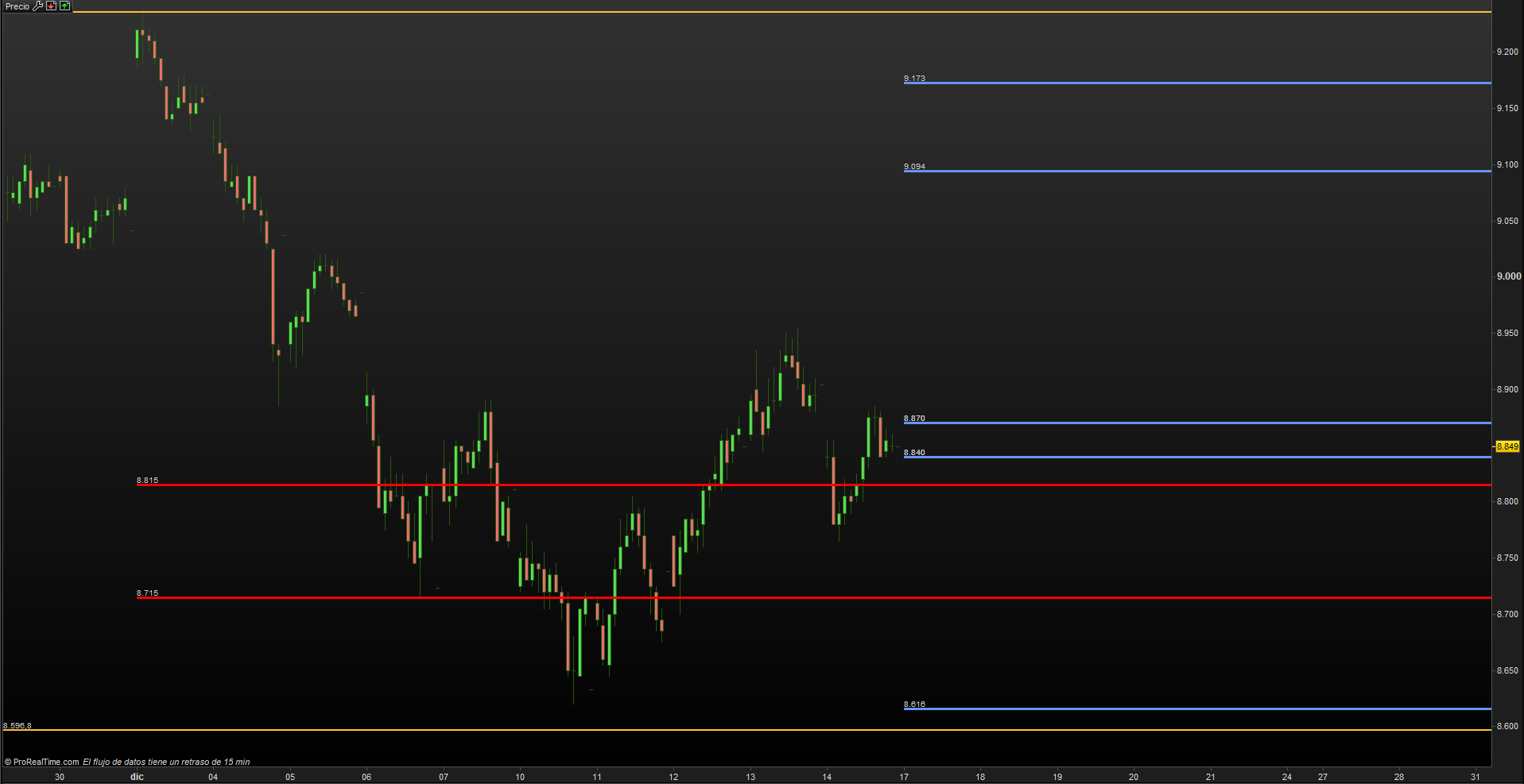 Lateral entre 8.870( semanal) y 8.715 (mensual)
