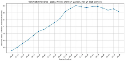Como puedes ver en la gráfica, las entregas de coches de Tesla van de capa caída. Las ventas van cayendo.