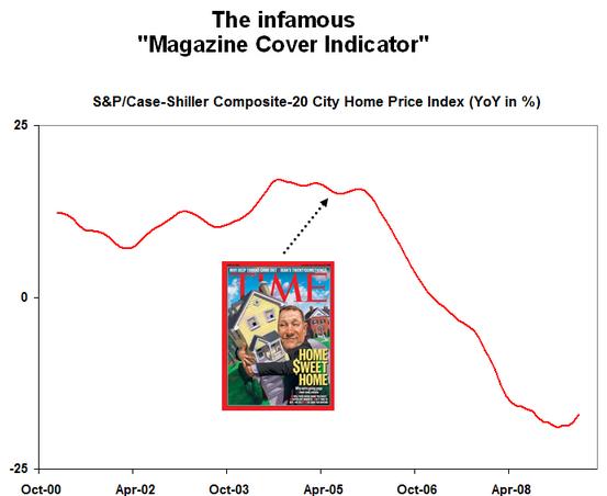 A su vez hay que distinguir que no es lo mismo que la portada sea de un periódico o de otro. Si el periodico/magazine es generalista y habla de bolsa o del mercado de la vivienda entonces es un fuerte indicador.