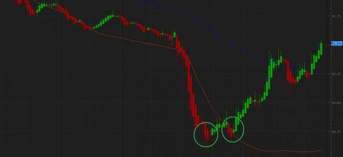 Muchas veces, después de una fuerte caída como la vista en al anterior imagen se nos hace difícil comprar pues la acción reciente del precio nos influye demasiado y puede hacernos pensar que el mercado irá más abajo.