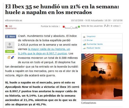 Les dejo el titular y los comentarios del 10 de octubre de 2008 (cerca del final de la fase de pánico total tras la quiebra de Lehman).