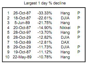 En la siguiente tabla se muestran los tres crashes antes mencionados. Dos días antes y dos días después de la fecha clave. 7-28 significa dia 28 del mes lunar 7.