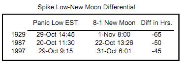 Esto ya hace bastante curioso que estos pánicos incluyendo 2008 se frenaran en el mismo espacio de 24 horas del calendario lunar anual. Se le podrá llamar una relación espuria pero empieza a ser difícil pensar así.