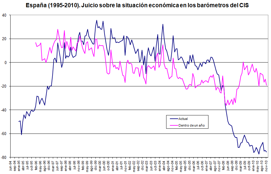 El 12 de enero ya alertaba de que un doble suelo se había formado. El 20 de enero observé un hombro cabeza hombro invertido al que nadie hacía caso. En los capítulos Contrarian Investing hablé de las figuras chartistas y figuras chartistas canceladas y como apostar contra las expectativas de la masa suele ser lo prudente. El 21 de enero, por si no había sido lo suficientemente pesado con el tema, hablé de que era un excelente momento para comprar a largo plazo. Por si fuera poco demostré que a pesar de lo que podría pensarse el pesimismo seguía reinando y hacía que el selectivo ibérico tuviera mucho potencial. Y ese pesimismo hoy lo vemos según datos del CIS:
