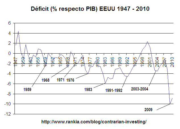 Sí, los años en que el déficit ha sido mayor ha coincidido con suelos del mercado. La última vez que hubo superávit en EEUU fue en el año 2000.