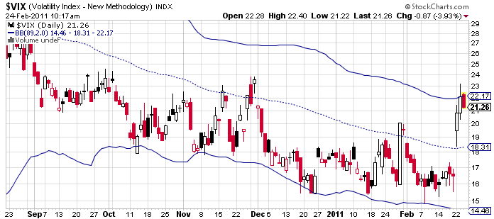 Hace un rato he tomado una posición importante de venta de volatilidad. El SP500 es posible que haya hecho un doble suelo irregular. Pero me he decidido por vender directamente volatilidad porque confio más en la caída de la volatilidad que en una fuerte recuperación del SP500. Por supuesto mantengo mis Ibex. Si alguien quiere vender volatilidad puede comprar el ETN inverso con código : XIV, eso sí, sean prudentes y mantengas una posición adecuada a su riesgo. Como se ve en la imagen el VIX está formando un reversal (aunque ciertamente estoy siendo agresivo ya que el patrón no es a fin de día).