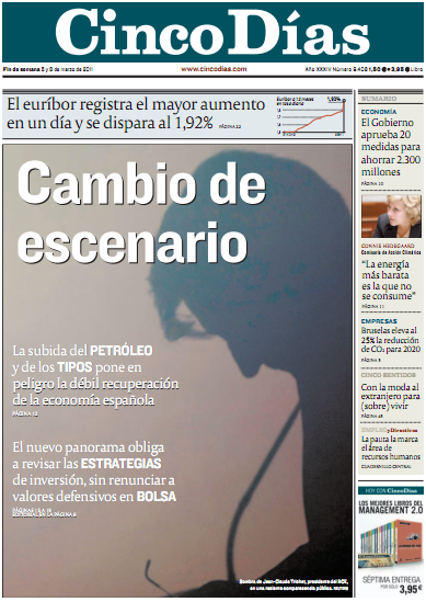 La portada del periódico Cinco Dias del pasado 5 de marzo es impagable.