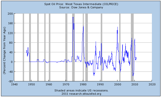 Y evidentemente no estamos en esa parte del ciclo. Si me apuran, si se dan cuenta, el precio del petróleo siempre que subió al menos un 40% sobre el año anterior, acabó teniendo en algún momento inmediatamente posterior un retorno negativo con respecto al año anterior.