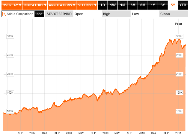 Este es el indice base en el que XVIX se fundamenta, según datos de Bloomberg. (para acceder a este dato buscar en este blog "Sitios que sigo" el enlace "SPVXTSER"