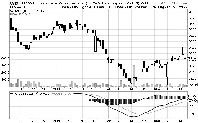 Es el momento más adecuado de hablar de un interesante ETN con código XVIX. Este producto opera el VIX pero de una manera diferente. Se trata de un spread entre los futuros del VIX de corto plazo y los de largo plazo. En concreto mantiene 1/2 posición corta de futuros del Vix de próximo vencimiento y 1 posición de larga de futuros del Vix de un vencimiento más lejano.