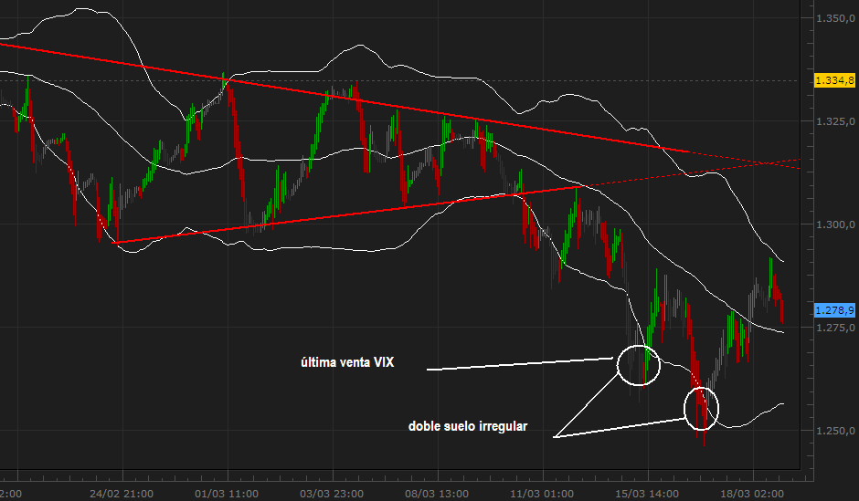 No solo retesteó niveles sino que por la noche se fue por debajo de 1250 para enseguida recuperar niveles por la mañana. ¿trampa bajista? no diría tanto, sino que uno no puede esperar que todos los dobles suelos y figuras de estabilización funcionen con simetría, hay que darle algo de manga ancha al mercado para que las cosas funcionen.