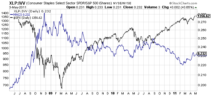 Por otro lado, los sectores defensivos están haciéndolo mejor que el mercado, lo cual es una interesante divergencia y que en mi opinión indica que el mercado no va a ir a ningún lado en el corto plazo: