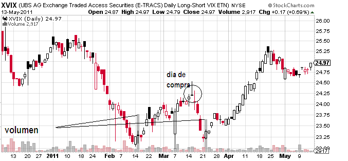 4) En caso de equivocarnos (recordemos que nuestra técnica sobre el VIX no es infalible), reduciremos la posición en XVIX a medida que se mueve en nuestra contra y reentraremos cuando de señales de giros al alza.