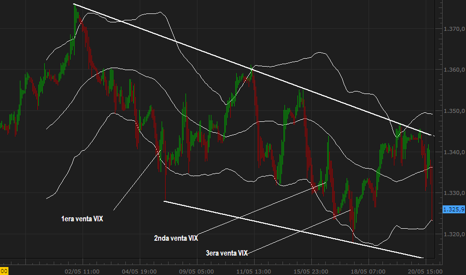 Seguimos dentro del tercer intento de vender el VIX (en esta última fase de mercado). En la noche del domingo el mercado ha abierto con más debilidad. Si no va a más se podrá aguantar el corto de VIX, si sigue mostrando debilidad habrá que ver el comportamiento de la volatilidad y actuar en consecuencia. Como siempre: nada de aguantar pérdidas más allá de lo razonable. El SP500 está formando una figura técnica que no sé como la llamarían los analistas técnicos. Lo único relevante de esta figura es que la parte alta de ella es una línea de 4 toques. Si la supera es posible que de lugar a un rally no pequeño y sobre todo nos hará respirar de tranquilidad.
