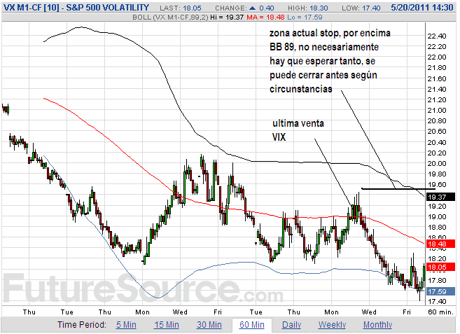 La última venta fue buena, pero es posible que el mercado no se haya terminado de estabilizar o que vaya a buscar caídas de mayor calado dentro del actual proceso lateral-alcista. La operativa para esta semana es fácil. Si el VIx empieza a superar la BB89 se ejecuta salida, en caso contrario se mantiene posición corta de volatilidad.