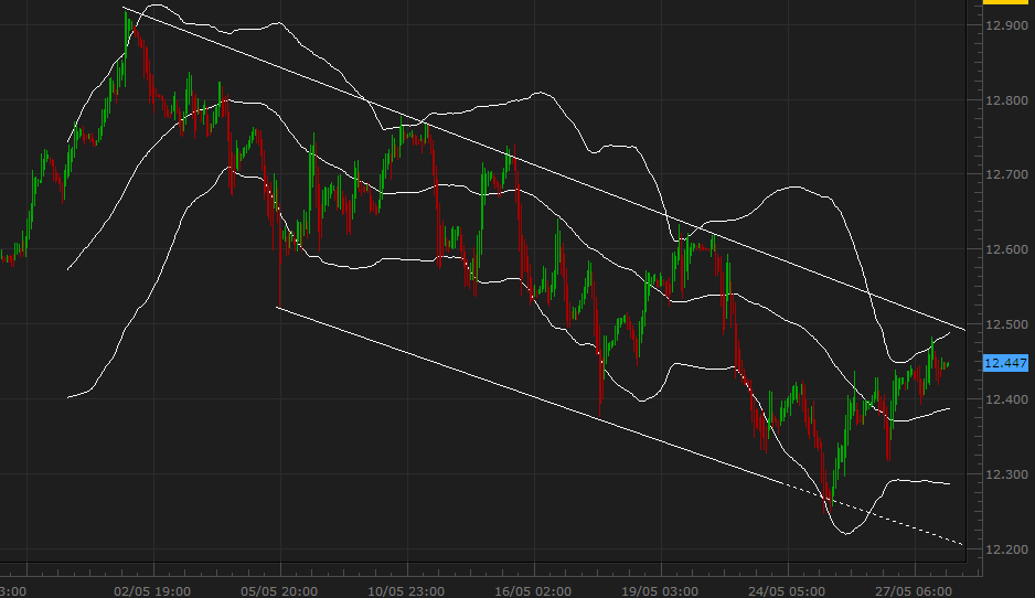 Lo más significativo es el canal bajista en el que el precio está consumiendo tiempo. Normalmente, los canales (y este me gusta porque es muy claro), rompen en la dirección contraria a la que se forman...es decir que este apuntaría al alza.