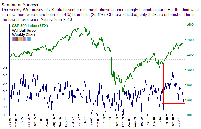 Lo más interesante es que el sentimiento negativo de la encuesta de la AAII ha tocado máximos desde agosto (traducción para los analfabetos funcionales = sentimiento negativo máximo = sentimiento positivo mínimo). Una imagen vale más que mil palabras: