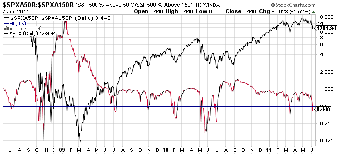 (Aquí tienen el enlace permanente. El código en Stockcharts es: $SPXA50R:$SPXA150R)