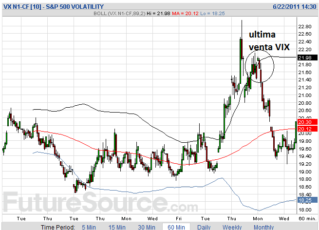 La parte buena es que se vendió el VIX desde muy arriba y hay margen de maniobra...pero bien se puede esfumar en un santiamén. Hoy es día de salirse si se pone fea la cosa. Aquí no hay nada más que analizar, solo esperar acontecimientos y salirse por patas si hace falta.