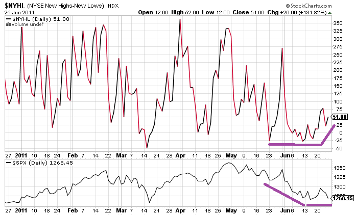 Además el mercado ha perdido fuelle en la caída y cada vez hay más acciones hacienod máximos y menos haciendo mínimos: