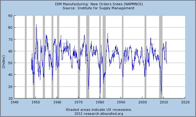 El índice ISM manufacturero, ha bajado de 50 (nivel de contracción). Este es un índicador líder y puede estar indicandonos una nueva recesión, especialmente si baja de 45. No obstante, a veces se pasa por debajo de 50 y no ocurre nada, así que es muy pronto para sacar conclusiones, aunque hay que tenerlo en cuenta. Algo así ocurre con muchos indicadores. Están alertándonos, pero aún es muy pronto. Desde luego para el operador contrarian bajista super agresivo se trata de una oportunidad. También hay que tener en cuenta que pueden surgir un nuevo QE3.