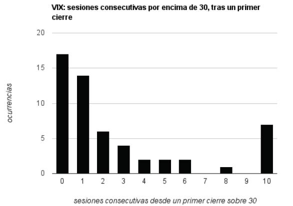 La mejor forma de actuar con cabeza al márgen de los miedos, siempre ha sido la observación empírca del mundo. ¿Y qué nos dicen los datos? Pues que hay un 86% de probabilidades de ver un VIX por debajo de 30 en los siguientes 6 días.