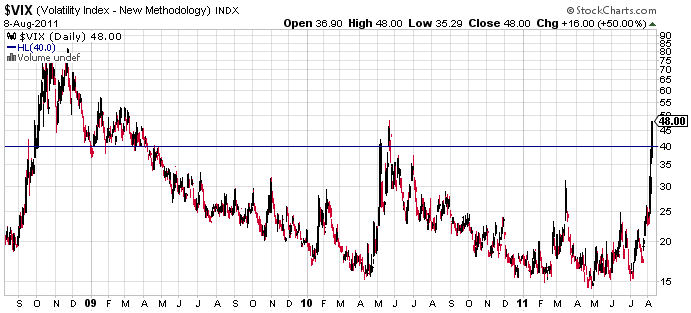 Veo bastante difícil que en 3 años tengamos dos crashes de los que hacen historia. Además, las condiciones de 2008 no tienen nada que ver con las de 2011. Actualmente la economia se está expandiendo. En realidad el actual crash tiene más pinta de parón técnico que de problemas reales. Que EEUU pase de AAA a AA+ es una trivialidad y realmente las agencias de rating no han descubierto nada al mundo que ya este no supiera. Pero cuando el pánico se adueña del mercado solo hay una cosa que hacer: esperar a que el miedo de la turba escampe.